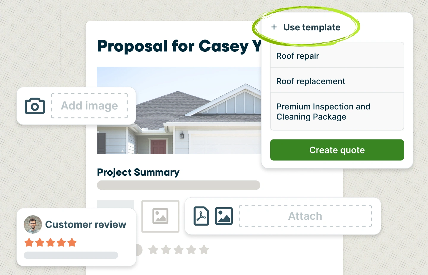Want more than just the template? Jobber’s advanced quoting software takes things to the next level with advanced quote customization. Impress potential clients by adding images, reviews, or other relevant attachments, such as a proposed schedule.