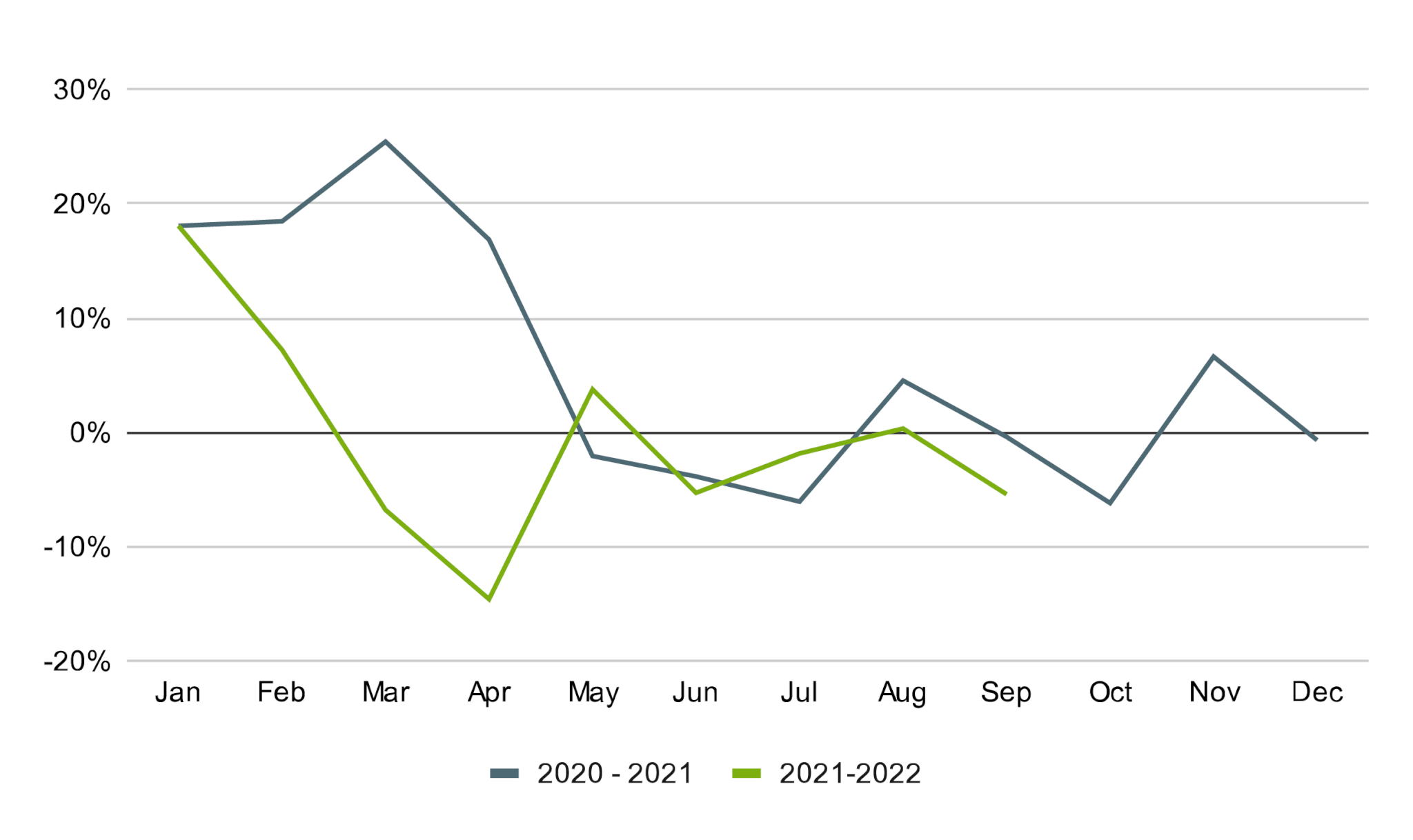 Most of the months in 2022 had negative growth compared to last year, which could be related to a number of factors such as continued supply chain issues as well as a softening of demand.3 The economy has slowed down across many categories, and Home Service is being impacted as well, although not as significantly as others.