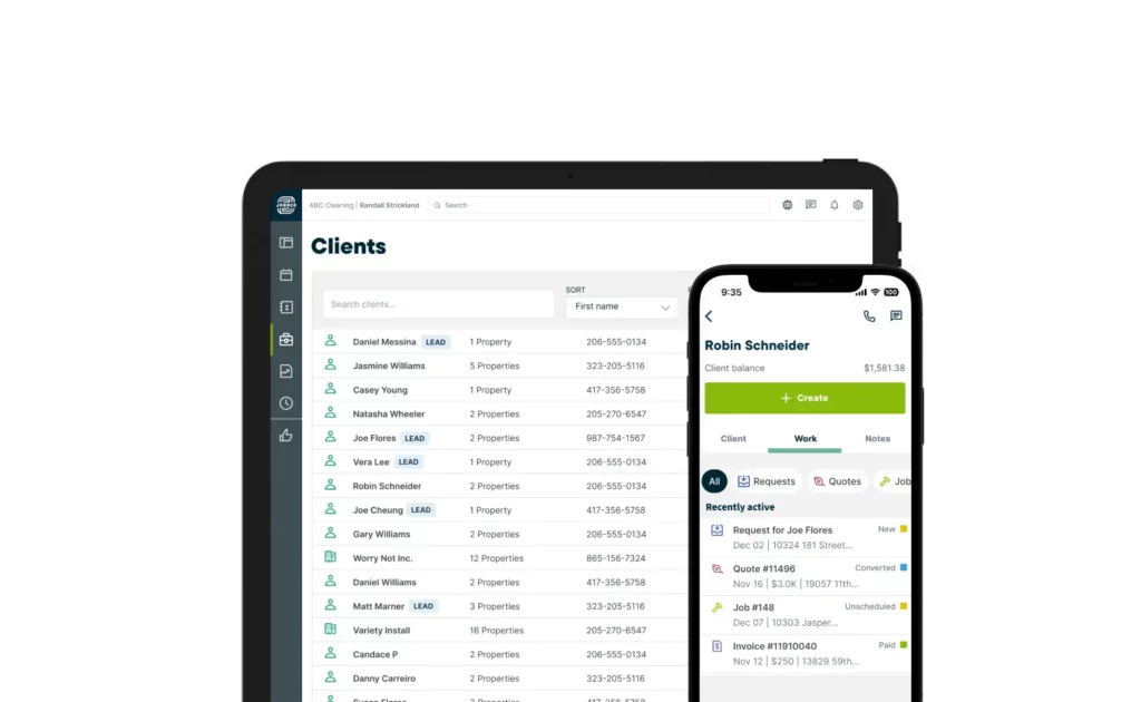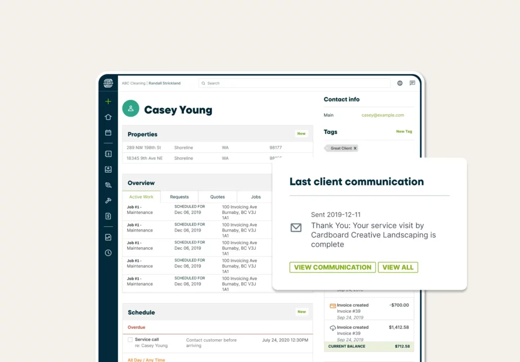 Cleaning service software like Jobber helps you manage and organize your client details, cleaning job history, and communication.