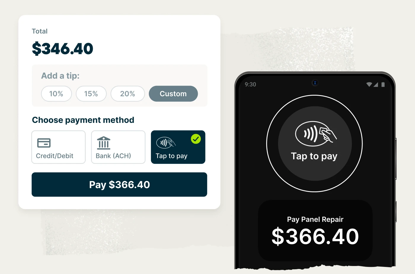 Yes. Customers can securely pay invoices online through Jobber using credit cards or bank transfers. You can also collect payments in person with Tap to Pay, or save a card on file for future work. Payments can sync automatically with your accounting software, including QuickBooks Online.