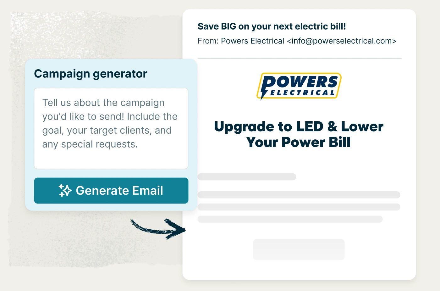 Bring in repeat electrical work by staying connected with your leads and customers. Send service reminders, seasonal promotions, or one-off messages to reconnect with customers who are likely to need service again. Jobber’s Marketing Suite uses artificial intelligence to draft emails and lets you review and send campaigns automatically based on your preferences.
