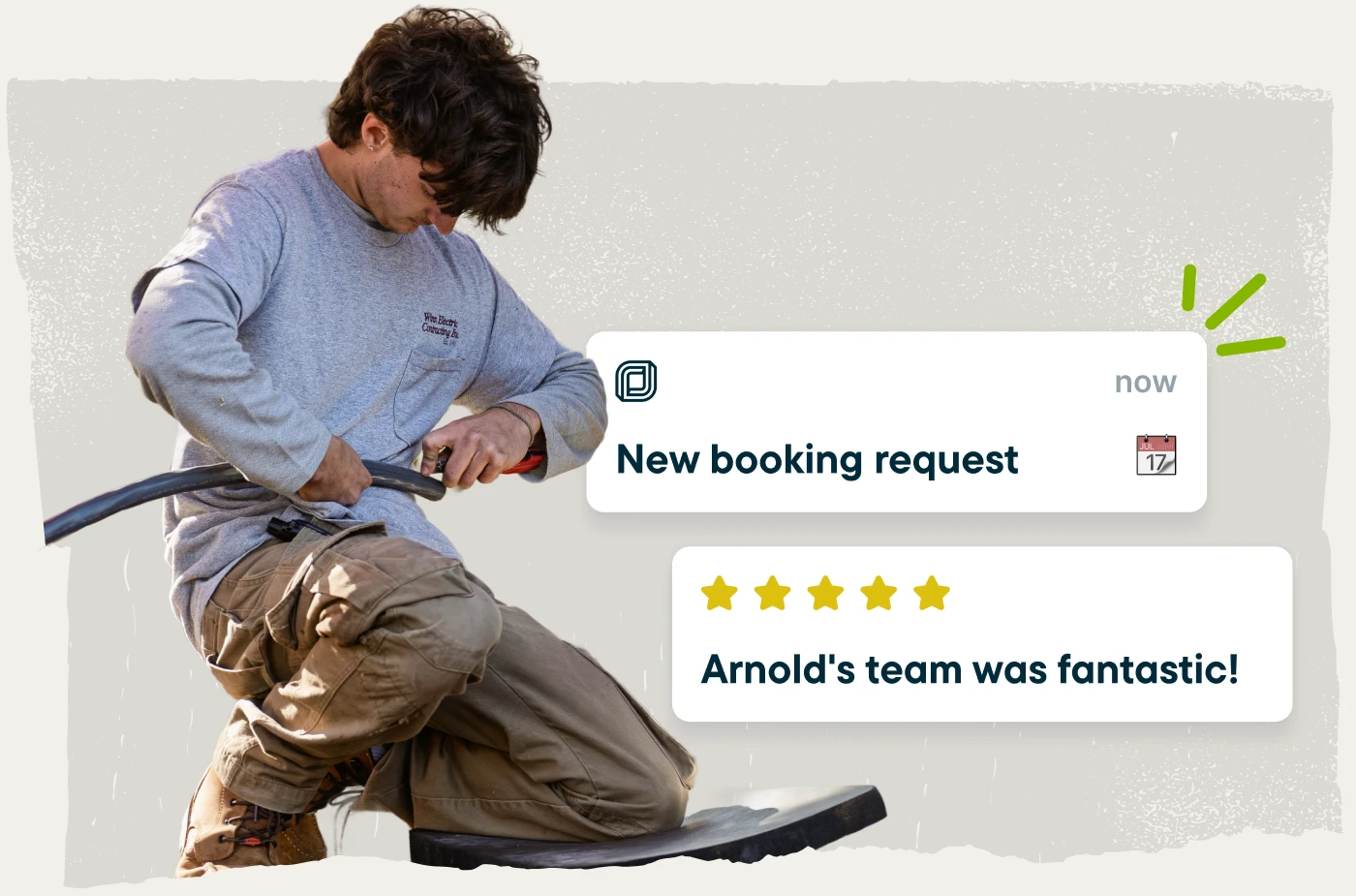 Jobber takes care of repetitive admin tasks, so you have more time to focus on growing your electrical business. Automatically send confirmations, reminders, and follow-ups at the right time, create visits for recurring electrical services, and collect payments without adding more work to your day.