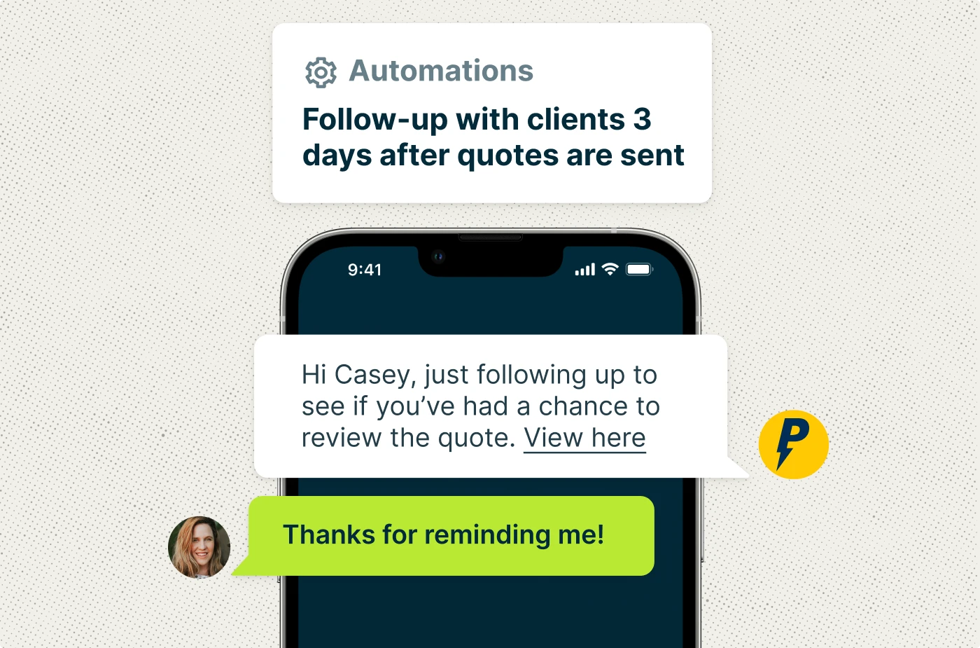 Keep open leads from going cold with automatic email or text reminders. You’ve already invested time in each estimate, and timely follow-ups help turn more of them into booked jobs while also improving customer satisfaction.