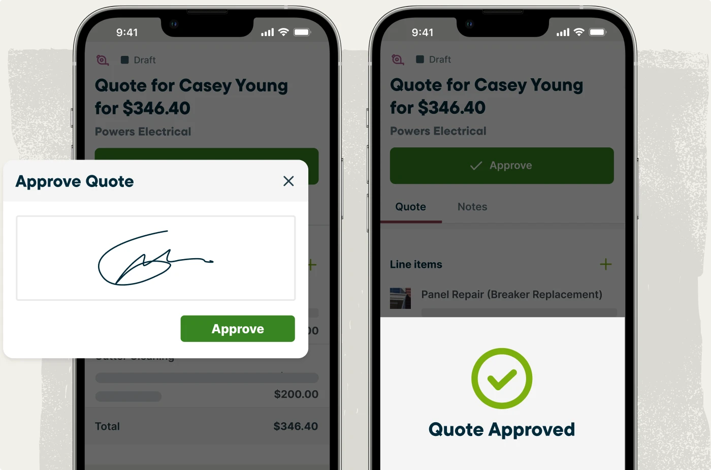 Create professional, custom estimates that help customers choose your electrical business with confidence. Show off past work with photos, back it up with customer reviews, and outline clear scope, pricing, warranties, and optional add-ons—all with your own branding. Customers can easily approve online with one click.