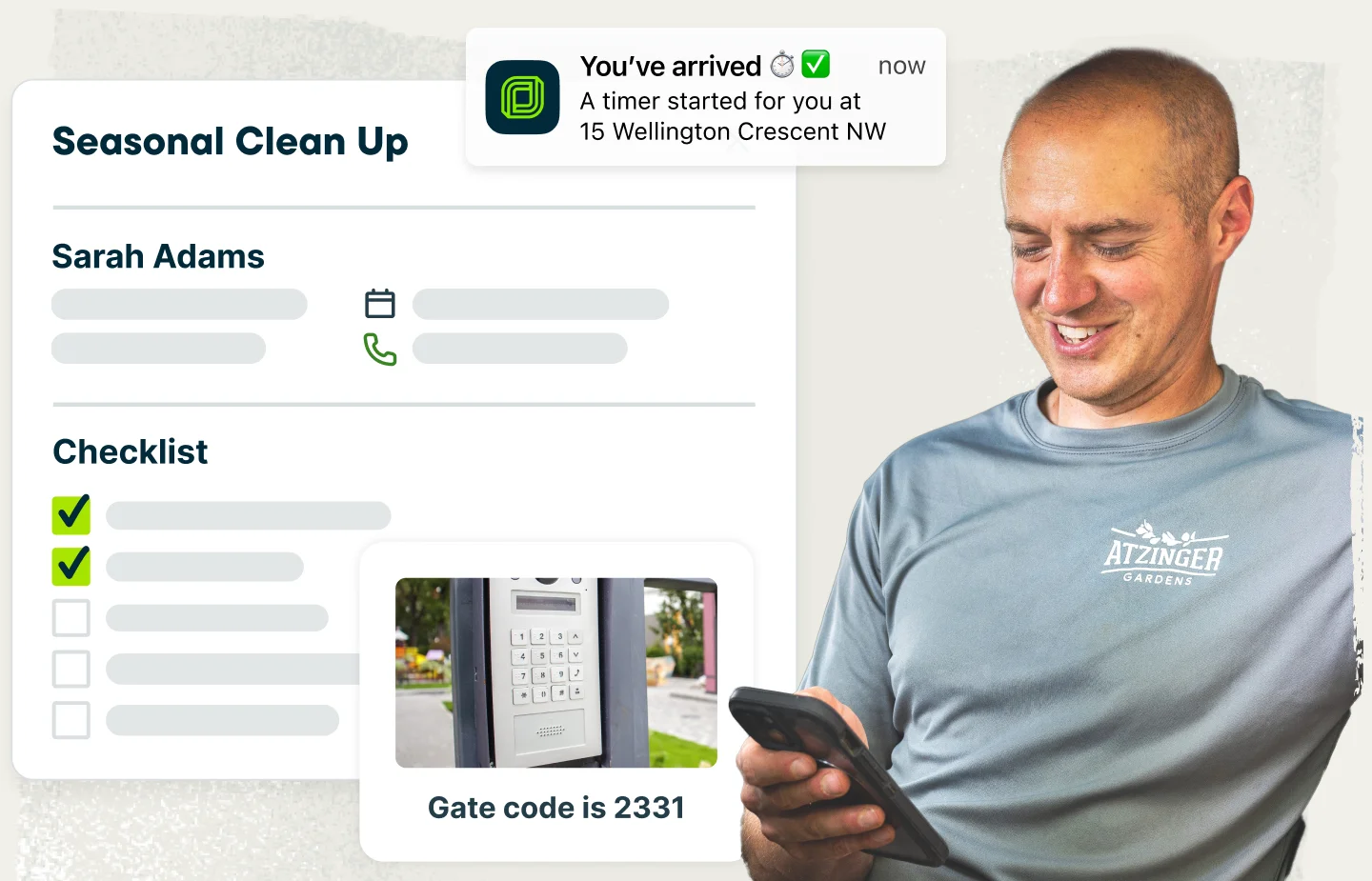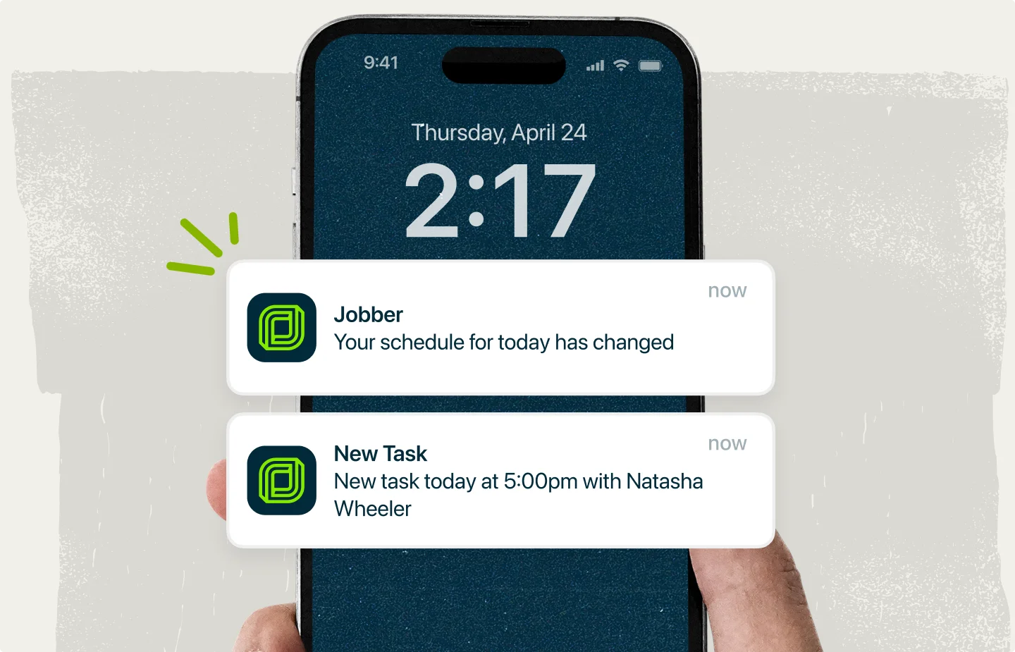 Equip your crews in the field with the Jobber mobile app. They’ll have schedules, job details, forms, checklists, time tracking, and before-and-after photos right where the work happens so jobs get done and questions get answered without constant calls or texts back to you or the office.