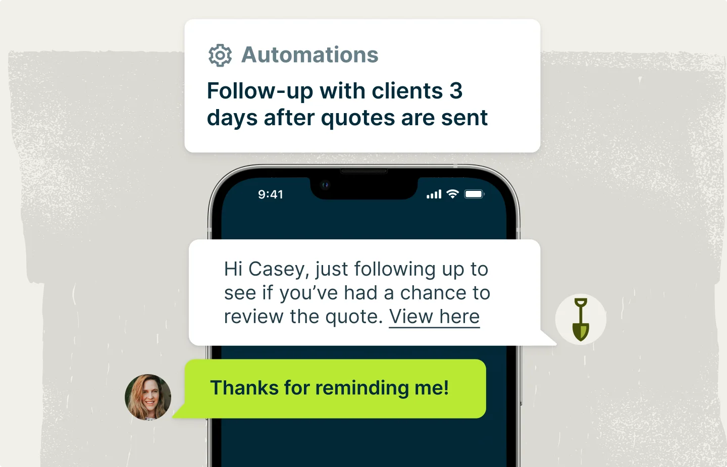 Keep open quotes from going cold with automatic email or text reminders. You’ve already invested time in each custom quote—follow-ups help turn more of them into booked jobs.