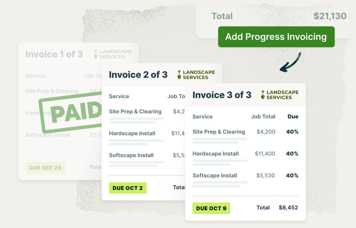 For larger, longer-term projects, set payment schedules tied to key milestones to reduce risk. Customers see these payment schedules upfront on quotes, and progress invoices clearly show what’s paid and what’s coming next, so you’re not waiting until the end of a long project to get paid.