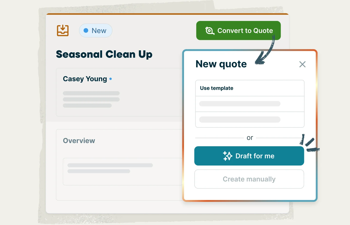 Spend less time creating complex quotes. Jobber AI uses your past quotes and templates to draft detailed quotes in seconds. Review, edit, and send—then get back to winning work instead of doing admin.