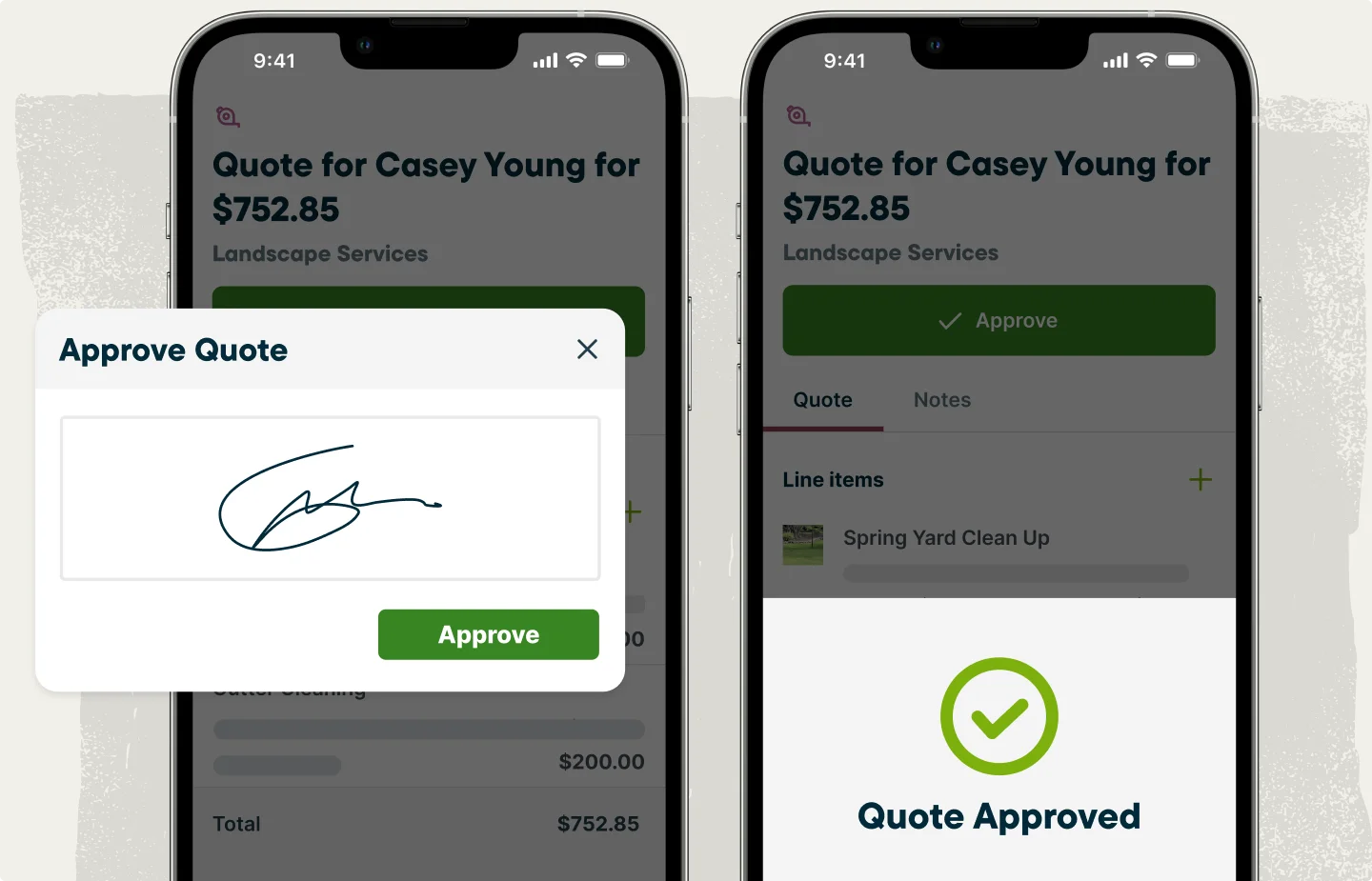 Customers are more likely to hire you for landscaping projects when they trust your craftsmanship and professionalism. Create and send detailed quotes fast, offer additional services with ease, and get approval online with Jobber.