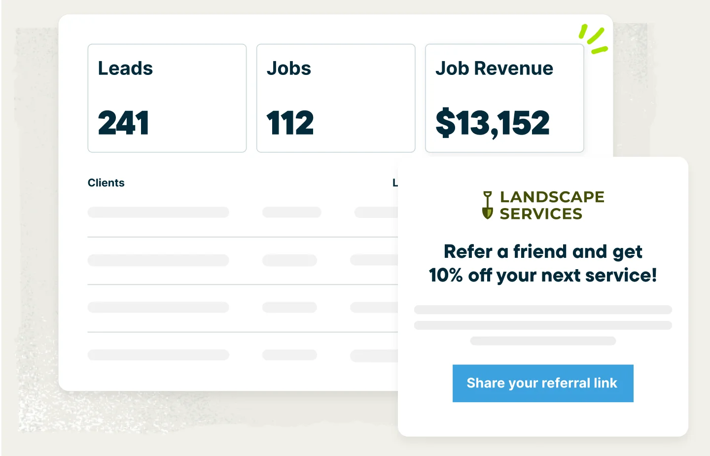 Happy customers are your best source of new work. Track and manage referrals in Jobber to grow your client list, keep your schedule full, and apply referral incentives automatically on future jobs.