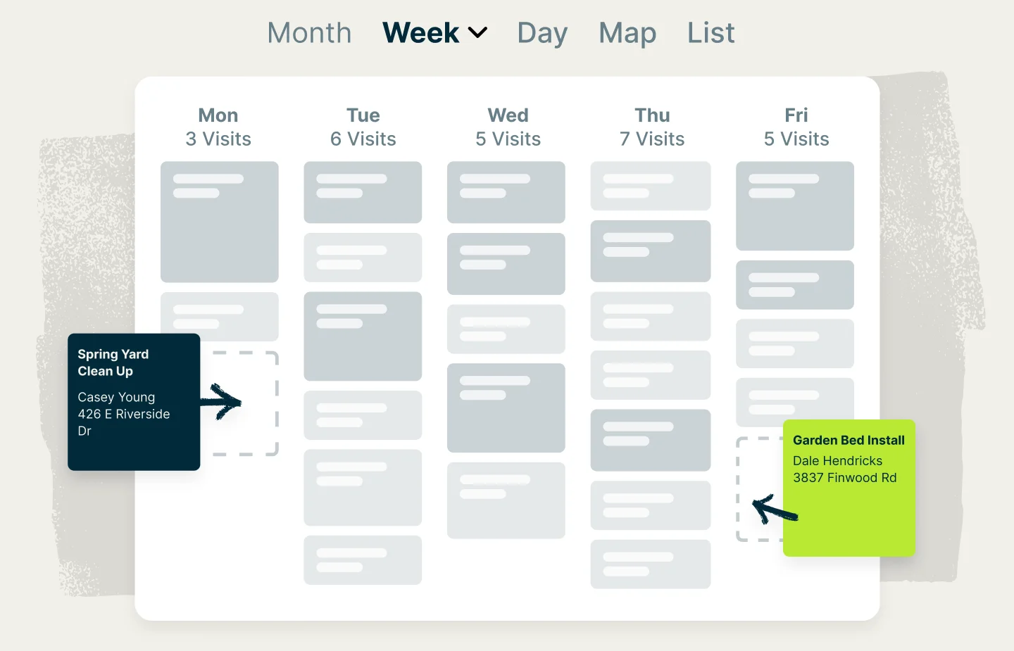 Unpredictable weather means sometimes you’ll need to readjust your landscaping schedule. Jobber’s bulk scheduling lets you quickly reschedule multiple visits for multiple clients at once—so you don’t waste time on administrative tasks.