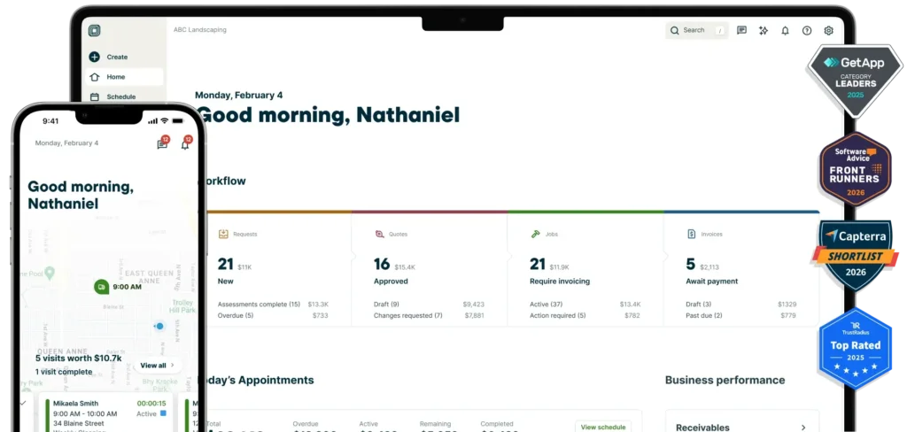 In less than five minutes, find out where your business stands and where there’s room to grow. Get tailored recommendations based on your size, industry, and goals. Powered by Jobber AI and free for all home service pros.